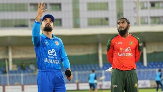 তিন ম্যাচের টি-টোয়েন্টি সিরিজের প্রথম ম্যাচে টস জিতে আগে ব্যাটিংয়ের সিদ্ধান্ত নিয়েছে আফগানিস্তান। বৃহস্পতিবার (২ অক্টোবর) শারজাহ ক্রিকেট স্টেডিয়ামে বাংলাদেশ সময় রাত সাড়ে ৮টায় মুখোমুখি হয় দুই দল।