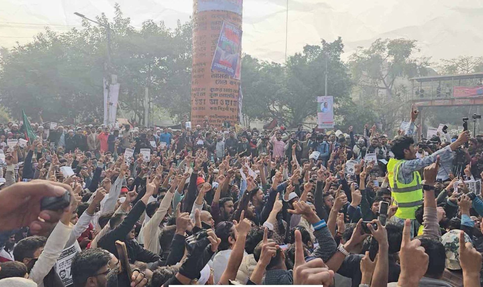 তাদের কণ্ঠে ‘তুমি কে, আমি কে? হাদি-হাদি’, ‘আমরা সবাই হাদি হবো’ এবং ‘আমার ভাই মরল কেন, প্রশাসন জবাব চাই’—এমন সব গগনবিদারী স্লোগান শোনা যায়।